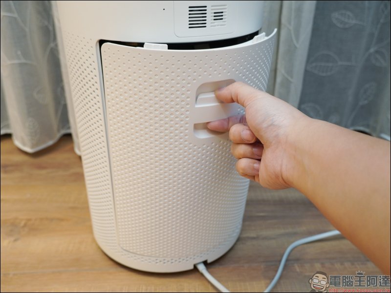 智米空氣清淨機的濾芯方式相當簡單,只需機身背面的保護蓋板按壓按鈕即可卸下: