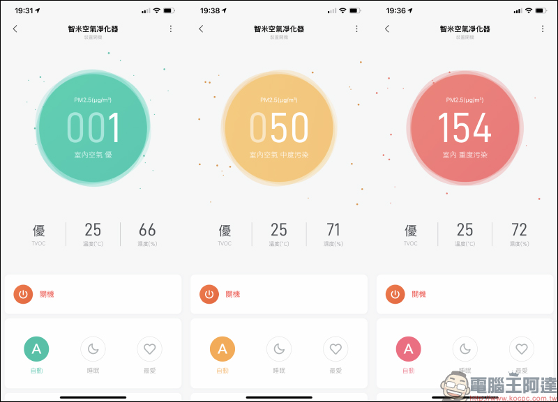 在不同的空氣品質狀態,用戶能從米家 App 遠端掌握室內空氣品質的變化: