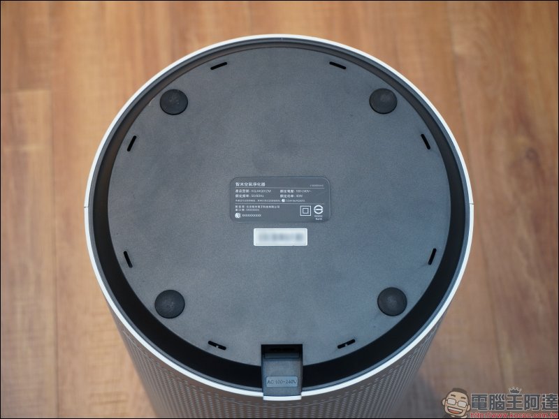 在機身底部可見到智米空氣清淨機四邊都設有橡膠防滑墊,能讓主機能穩固擺放在家中不易滑動: