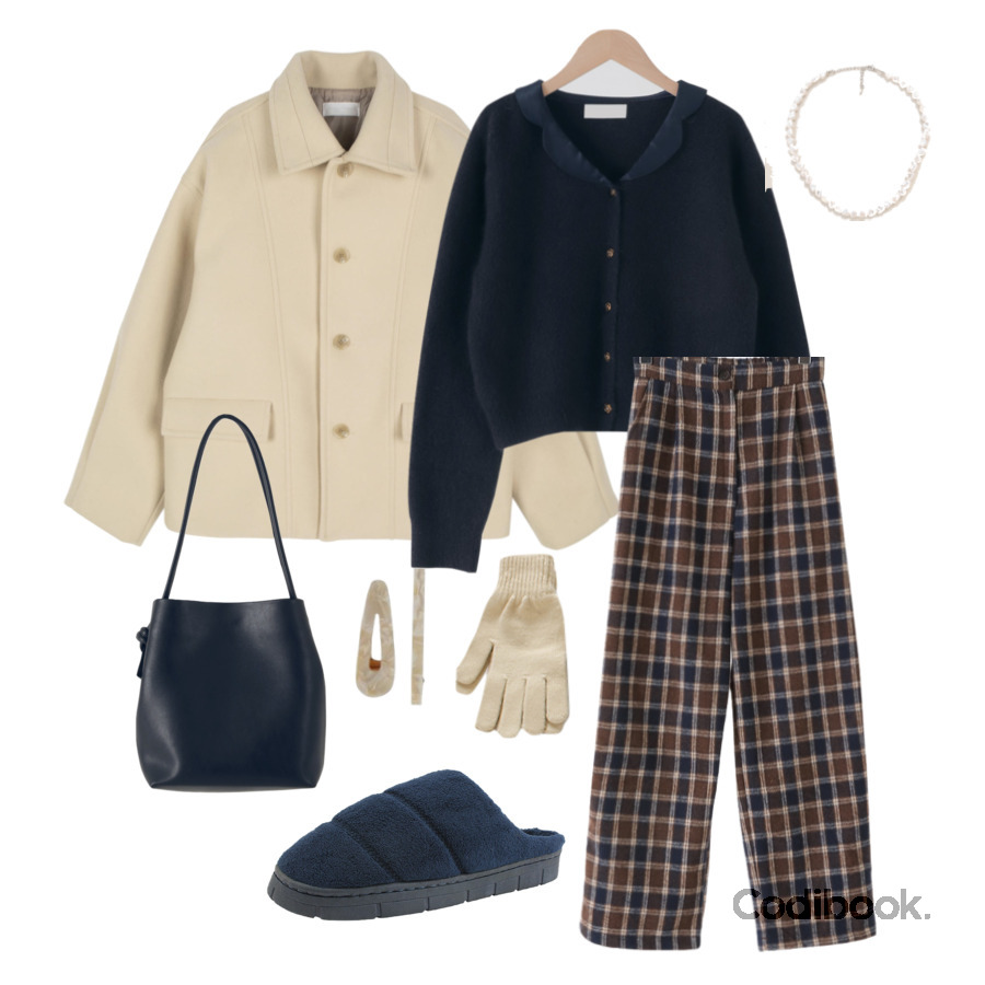 假日的最後一天就用休閒舒適的穿搭度過吧!聖誕感濃烈的深藍與紅棕色格紋長褲,搭配淺色外套,把握全身顏色不超過三個的黃金比例,率性有型、保暖度滿分又時髦!