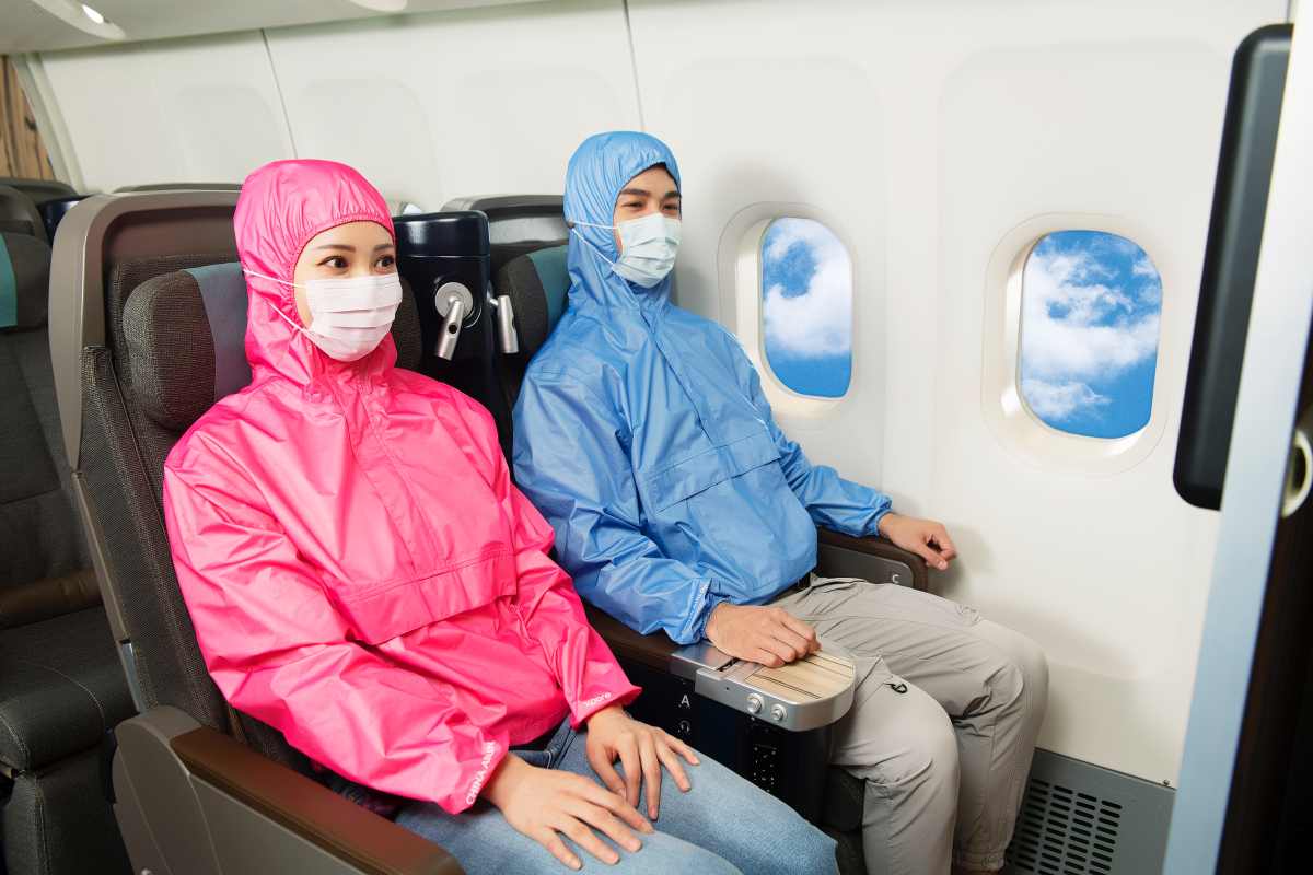 中華航空則是選擇與明基材料所研發的環保防水透氣織物品牌Xpore合作,推出機能防護衣「Xpore時尚隨護帽T」,造型是已連帽上衣設計,衣服上也有許多特別的收納空間設計非常方便,在帽緣、袖口和衣服下擺都是鬆緊設計,減少露出的皮膚面積加強防護力也好穿脫,在防護衣的接縫處也以透明膠條加強,還有胸前的大型口袋,更方便放入旅行必須的證件等隨身物品,除此之外,連帽的部分還貼心設計了口罩耳扣,就算是長時間配戴口罩也不會讓耳朵不舒服。
