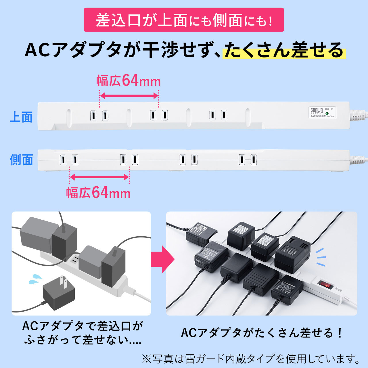特殊的配置方式,每個插座的距離最大是6.4cm,即使加入體積大的adaptor仍然不會干擾,可以容納共8個插頭。背後共有3個磁鐵,方便固定於辦公桌側面。有1、2、3m長款式。