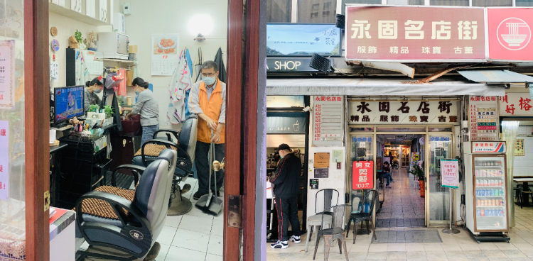從大安捷運站6號出口一出來,第一眼你會先看到超有名的榕樹下小吃店,緊接著就是一個寫著「男女剪髮100元」的紅色立板和一個白天永遠開著的玻璃電動門,沿著指示走進來,左手邊就能看到「永固美髮」小小2坪大的店面,擺著兩張老式剪髮椅。如果沒有客人,徐老闆通常會坐在靠門口的那張椅子,邊看電視邊等客人上門!