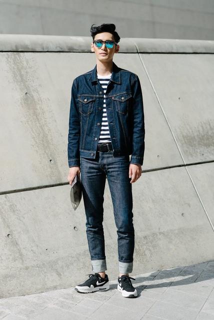 在此有個穿搭小技巧要分享給各位型男,就是當你以牛仔外套搭配素T時,記得內裡的T恤要「略長於」外套,如此一來才能突顯出層次感,整體比例也會比較好看,許多潮人都深知這個技巧,學起來你也能像他們一樣亮眼!