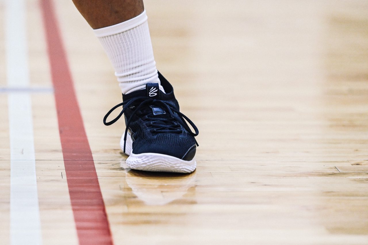 另外還要注意,Curry Flow 8 鞋帶收攏效果相當顯著,這點讓我在開打前準備時感到超安心,滿滿的戰鬥感襲上雙腳,不過鞋面材料對應到腳背區域並無特別加厚,倘若跟我一樣太貪心勒太緊會讓壓迫感蠻明顯的,一度不舒服到我趁死球空檔趕緊鬆開重綁,所以要是尺寸買大了,想藉由綁緊鞋帶去彌補的效果可能有限。Curry 系列一路下來也連續穿了好幾年,編輯從 Curry 3 開始到 Curry Flow 8 都是選原尺寸,提供大家對照參考。