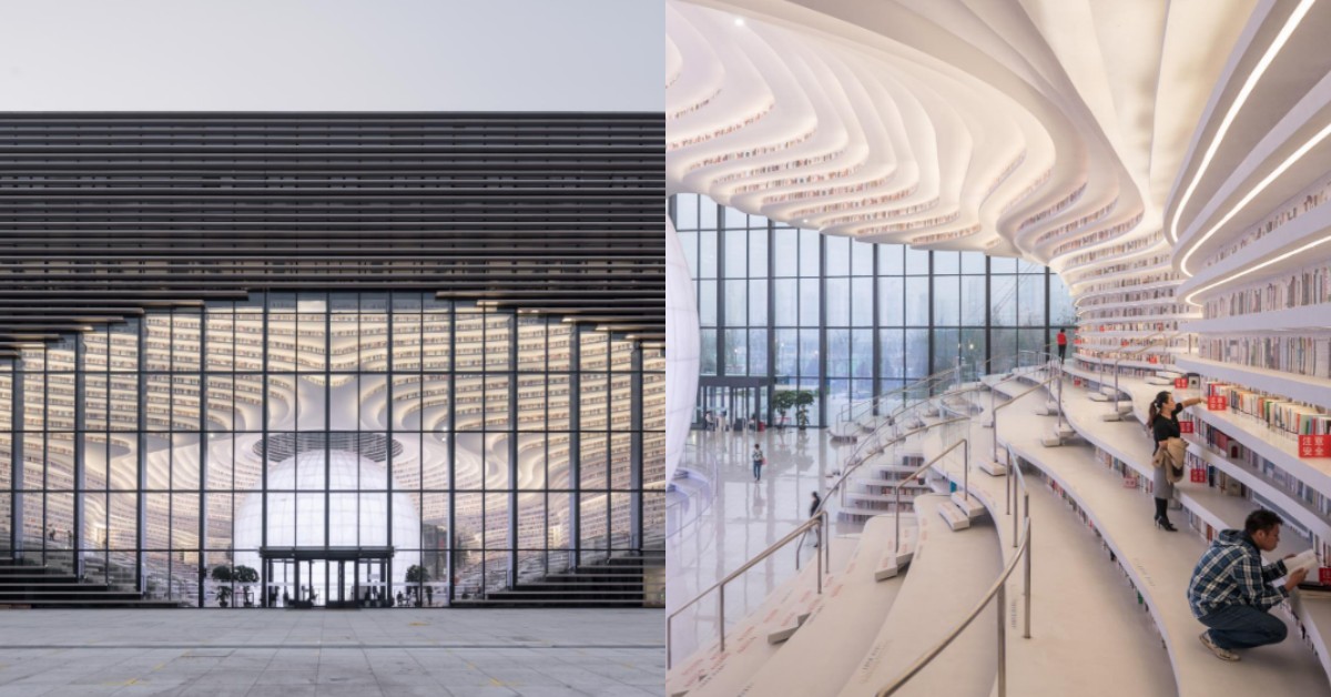 儂編就來說說這間在國外紅透半邊天的《天津海濱圖書館》,用崩潰快的速度從第一幅草圖到開幕僅用了三年時間就完全完工,圖書館的入口處彷彿像一顆眼球般打開,走進裡頭就像走進知識探索的書海般。內部的階梯式書架彷彿像海浪般疊起呈現。不論是裡裡外外的設計,都讓這座圖書館充滿未來主義的氛圍,這種勇於在空間追求突破的精神,正是《MVRDV》備受矚目的原因。