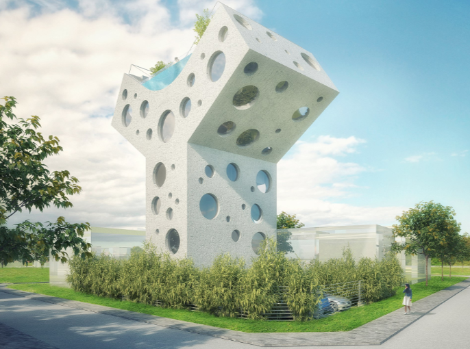 這棟Y型字母私人住宅將是府城未來最酷地標!充滿未來主義感的建築外型,顛覆了台南建築的天際線,這棟《MVRDV》所設計的度假別墅住宅,被命名為《Y House》,特殊的形體縮小占地面積,而著重在整體空間的向上發展性,特殊的圓狀窗讓光線、視野的都倍增多樣角度,不過就是因為這個特殊的圓窗,讓儂編覺得遠看很像Y型的海綿寶寶。