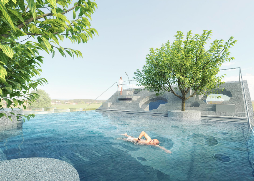 而最吸引儂編的是《Y House》的頂部圓弧狀設計的天臺,打造出屋頂游泳池,雖然泳池在這裡游泳可能會覺得池子的空間很小,但能夠遠眺遠方綠地美景泡在泳池就是超級舒服!兩側開放式的階梯也可以讓你躺著閱報做日光浴!誰不想在這裡好好放鬆呢?不過《Y House》屬於私人住宅的部分,直接闖進儂編會直接被警察抓走~(淚哭)