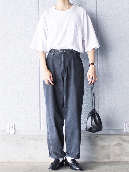 說到素面 T-shirt 當然不能少了白色的款式,簡約好搭配外,也能作為內裡層次穿搭,是男士們一年四季皆能好好使用的經典樣式。而白 Tee 通常容易給人過於隨性的印象,因此在穿搭時建議大家將衣服下擺紮進褲頭裡,並繫上皮帶,且褲款可以選擇同為經典的黑、灰,亦或是丹寧藍,讓整體呈現出更加一致性的俐落與簡潔!