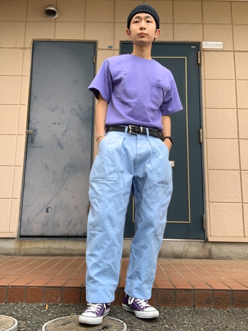 喜歡嘗試亮色系穿搭的人,則可以選用紫色的 T-shirt,一件就很搶眼之餘,與經典的水洗丹寧褲搭配則能營造出強烈的 old school 感!喜歡有些復古、率性穿衣風格的你不妨這樣嘗試看看。