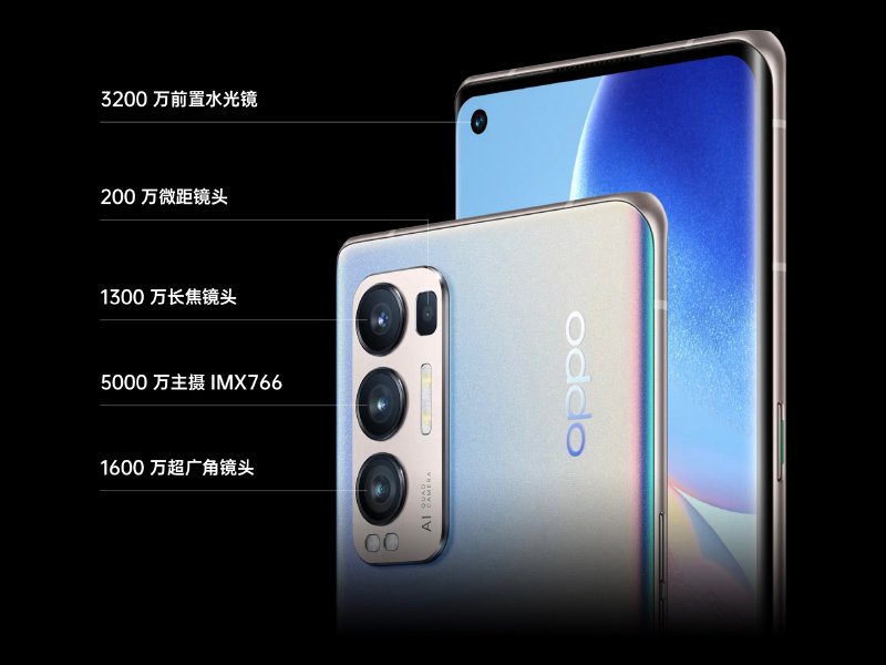 相機部份則是 Reno5 Pro+ 相比 Reno5 和 Reno5 Pro 更明顯的特色。 OPPO Reno5 Pro+ 為全球首款採用 SONY IMX766 感光元件的機種, SONY IMX766 擁有更大面積和丹像素尺寸,能帶來更大的勁光亮與好品質。