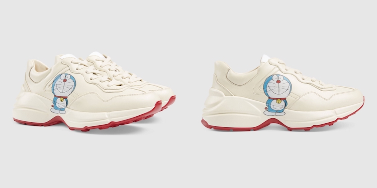 白鞋永遠不嫌多!Gucci 這雙厚底小白鞋,運用米白為基底,簡單而不複雜的線條,加上哆啦 A 夢高度識別的身影,一定可以成為穿搭中的亮點之一。