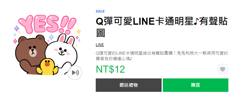 LINE STORE近期最新貼圖優惠,為提供10款有聲、可動、特效等熊大主題精選貼圖,通通2折12元。