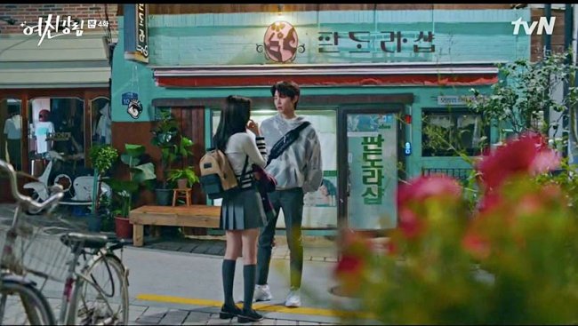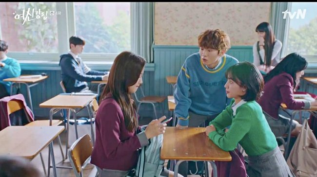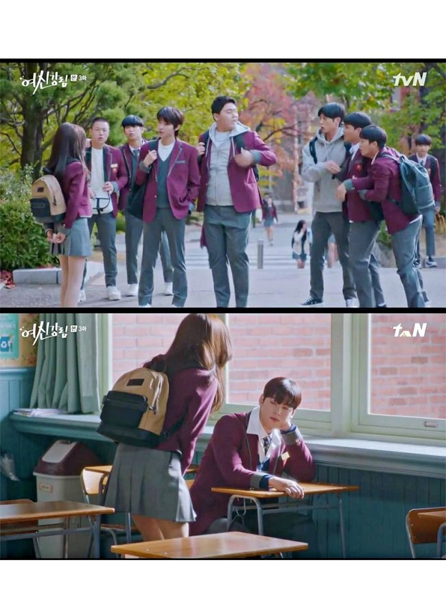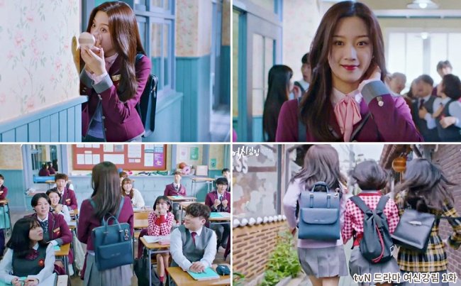 大變身大功告成,緊張到不行的朱靜轉學D DAY,吸引劇迷視線的就是這咖「海軍藍後揹包」,方形造型全皮革打造,搭配難得整套穿好好的校服更有踏出舒適圈的儀式感(笑),還馬上交到秀貞、秀雅兩個好友~