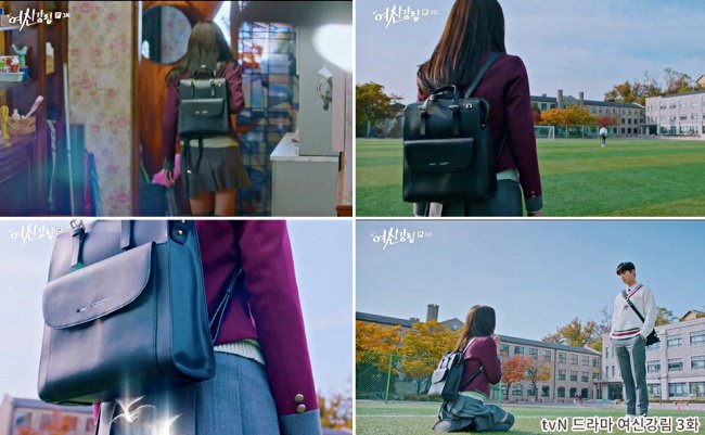 為了守護祕密,向修豪下跪的屈辱瞬間(?),朱靜已經換成同款不同色的全黑皮革後揹包,俐落、簡約的設計,在韓妞之間人氣超高!