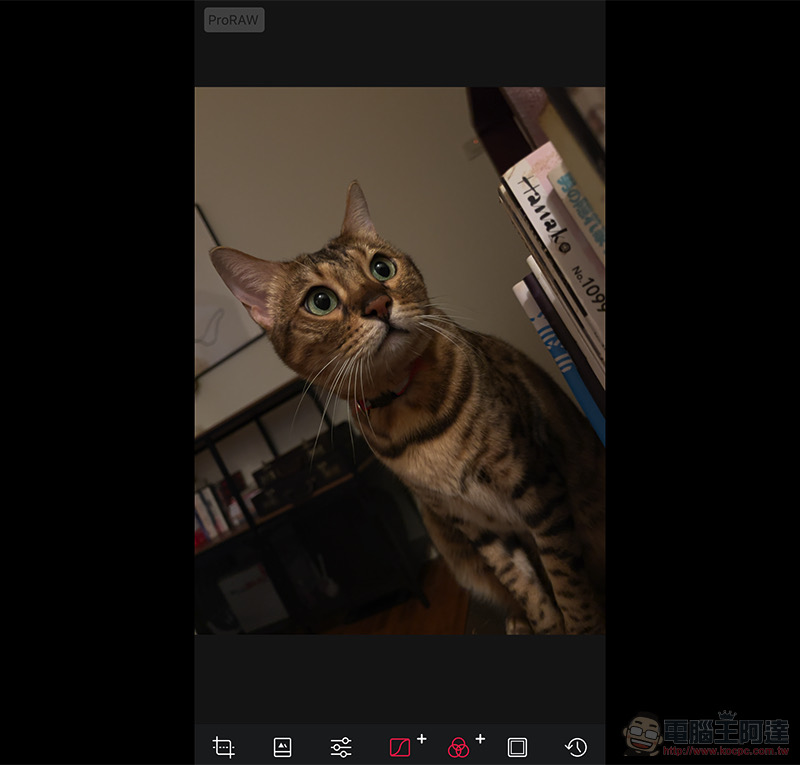秉持著有貓可以騙讚的原則 這張偏暗環境的室內照我覺得對 12 Pro Max 拍攝表現其實頗滿意,再加上 ProRAW 提供的色溫調整,讓原本偏暖的照片可以稍微調回來一些: