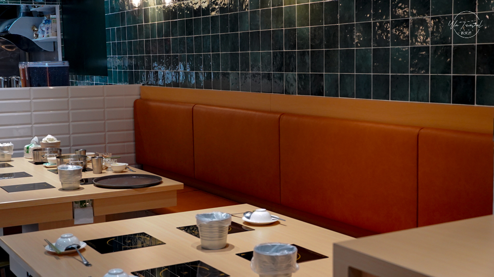 焣苑火鍋用火部「焣」,艸部「苑」個人小火鍋,設計很文青感使用大量的墨綠色跟白色做搭配,讓我想到也在板橋的晴子冰室,這樣的色彩搭配超舒服,也同時讓人有復古外加一點文青感,好喜歡。