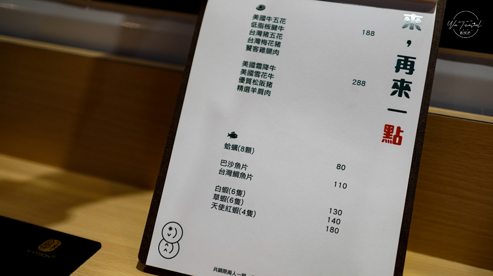 22 焣苑火鍋價格屬於CP值算是中階價位(但是不收服務費)菜色簡單不複雜的鍋物店,在近期12月才剛開幕,採用一人一鍋開心吃基本鍋物都是NT.288(美國牛五花、低脂板腱牛、台灣梅花豬、台灣豬五花、饕客雞肉)