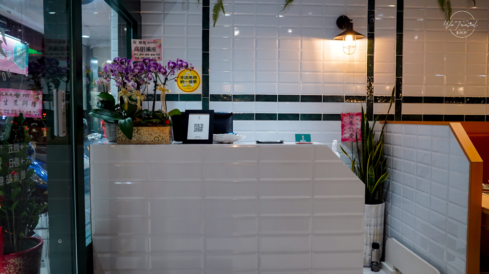 04 簡單的焣苑小火鍋得櫃台不太大,但是大小很方便也很可愛,全系列的白長條磚,讓空間顯得變大。