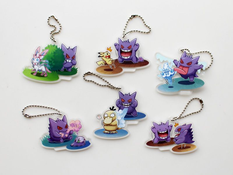 第二款是「耿鬼吊飾」,總共有六款,都是調皮的耿鬼捉弄其他寶可夢的樣子,看皮卡丘嚇了好大一跳~但是有發現其中一個亮點嗎?有一款是百變怪變成耿鬼,而耿鬼自己被嚇到跳起來的造型,原來耿鬼也會有失敗的時候,真的太可愛了!