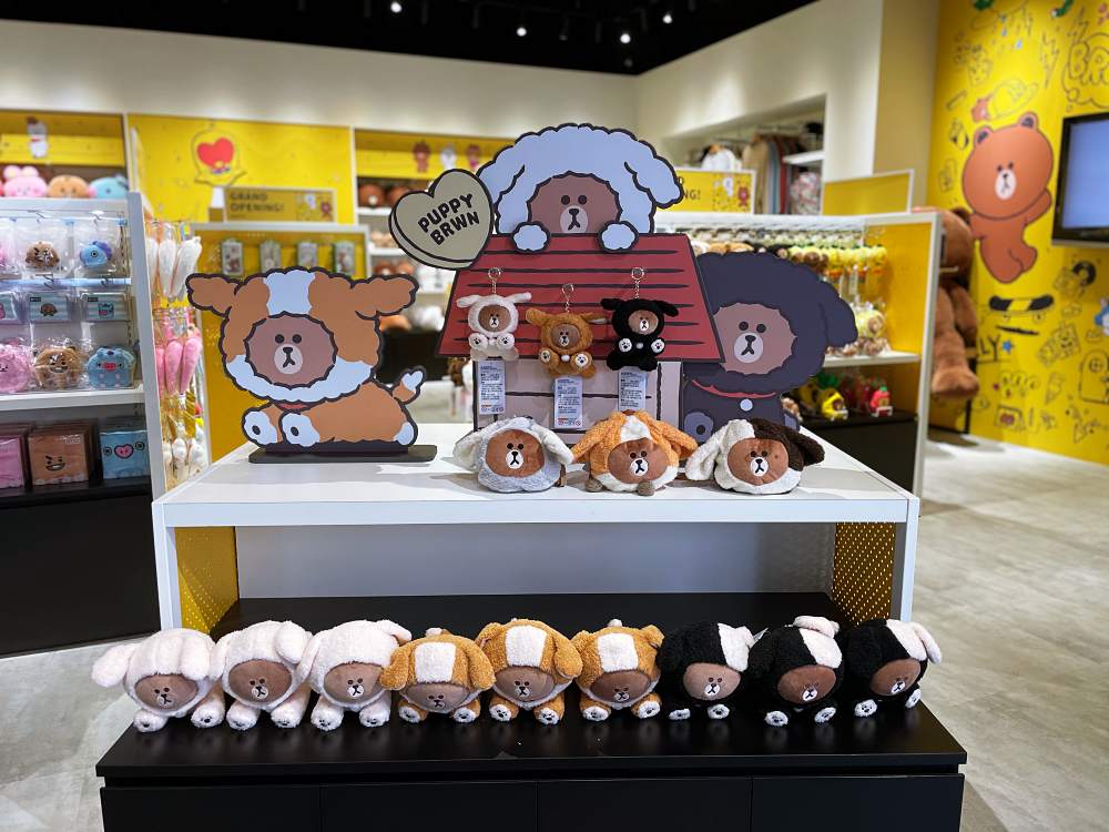 既然現場都有「PUPPY BROWN狗屋」的裝飾,最新的狗狗熊大系列當然也能在高雄店買到,熊大化身成白、黑與棕色等可愛汪汪,共有玩偶、吊飾、束口袋兩款週邊,其中玩偶&吊飾的腳底還有萌萌肉球,狗奴們快趁機收編。