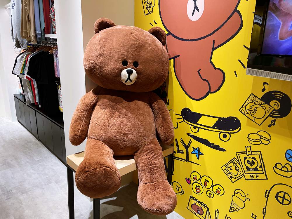 獨家首賣商品部分,必搶的就是150公分高的坐姿熊大玩偶,毛絨材質搭上鬆軟觸感欠抱緊處理,療癒程度超高,冬日必備,超限量只有10隻,粉絲必手、刀、搶!而「BROWN&FRIENDS毛球鑰匙圈」也搶先在高雄販售,藍、粉、黃毛球分別搭配在雲朵上賣萌的熊大、兔兔與莎莉,可愛造型令少女心大爆發,必須掛一個在包包上。(笑)