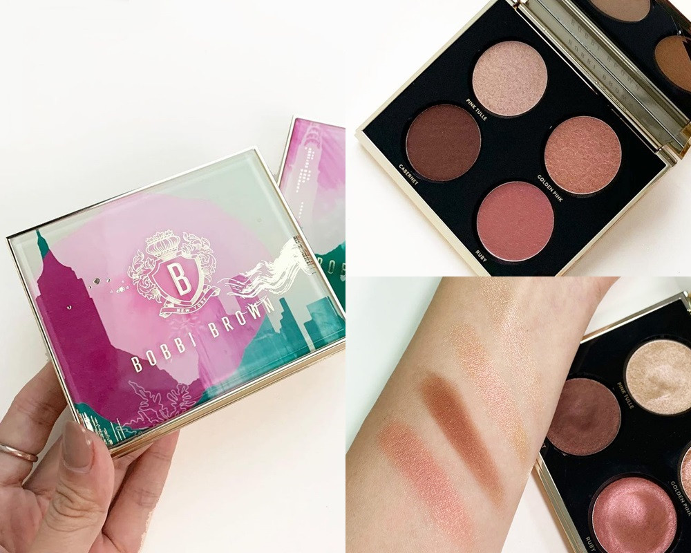 Bobbi Brown 今年聖誕推出的超可愛漫舞紐約4色眼彩盤,與瑞典時尚插畫家 Cecilia Carlstedt 聯名設計,從外殼就讓人少女心爆發!#勃根地紅這一色盒內是非常優雅的紅棕調,慕斯質地帶著細緻的偏光亮粉,不只沾取眼影時完全不飛粉、四色的搭配度非常高,對於新手來說簡單實用又不需擔心配色問題~尤其帶有粉色偏光的#GoldenPink,用在點亮眼妝效果令人超驚豔!