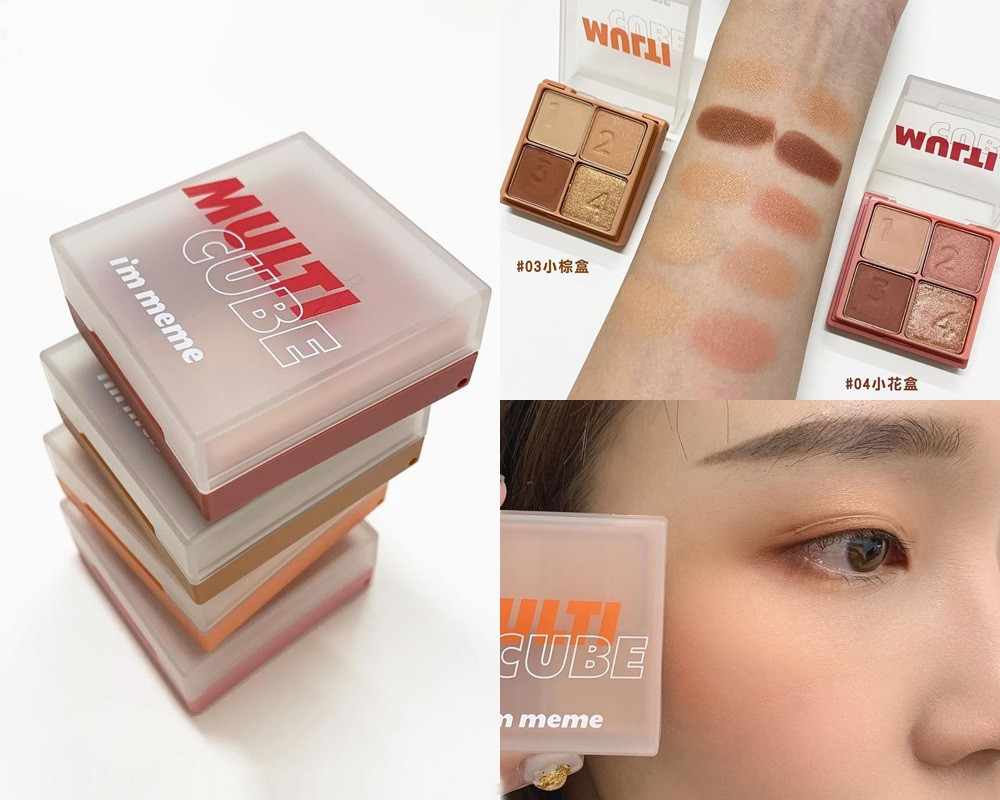 I'M MEME近期推出的超可愛小方塊眼影組,絕對是新手必備!不只價格很親民,這一盒更是包含四色以及一顆紅色~出門在外、旅行時帶他真的超方便!編推薦新手可以使用#03這一盒,以大地色系的棕色調作為主調,不管是單眼皮還是新手都很好駕馭,消腫泡的效果更是一絕!