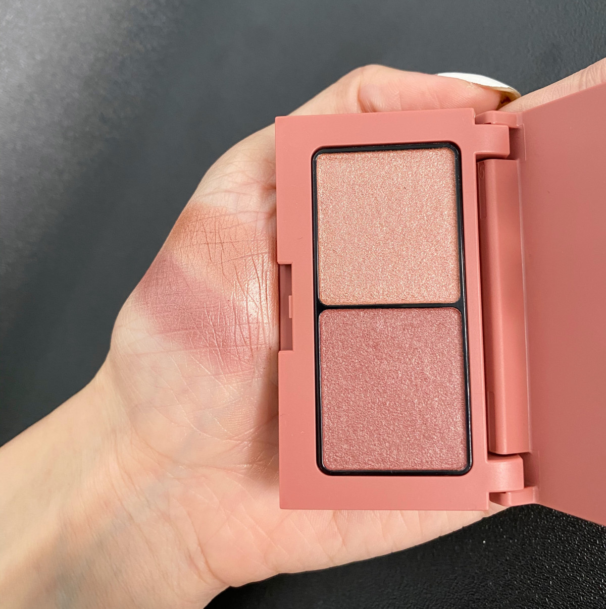粉質更是讓人驚艷!延展性好也適合疊色,不論是用指腹暈染,還是透過它附贈的雙頭小刷,都能輕鬆上手不暈髒。特別是左下角那顆暖紅茶色,揉合了棕橘色調,很襯東方人膚色。整體來說,是款不挑膚色巨顯白,放空也能畫出高級妝感的眼盤。