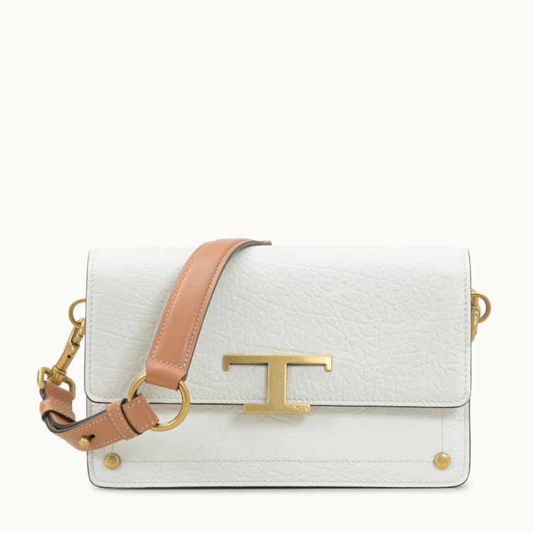 從鞋履品牌斜槓到包款設計,Tod's 僅用短短一年的時間就用 Timess 包款抓住女孩的心!這款以純白為主體的包型,加上金色的 T 字包釦,揹帶則反差的以珊瑚色呈現,小巧可愛的樣貌讓人過目難忘。(商品售價:NTD73,600)