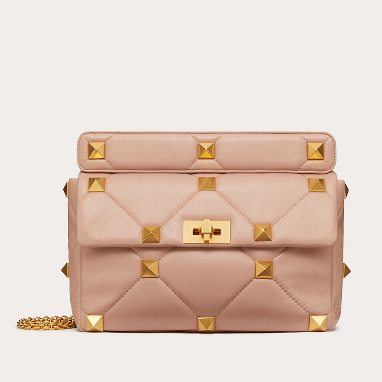 Valentino 總能用鉚釘展現女人率性的一面!今年品牌推出的 Roman Stud 包袋,將皮革以宛如般柔軟的方式呈現,並反差的加入超大鉚釘設計,不管妳是甜美路線的穿搭,還是個性的服裝搭配,Valentino 這款包都適合妳!(商品售價:NTD103,500)