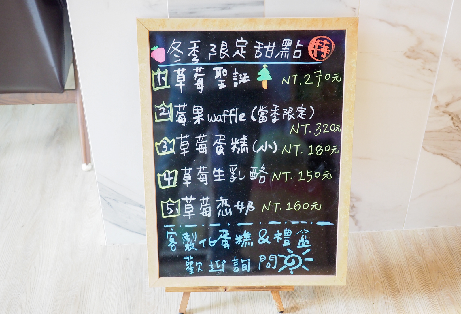 而且前陣子新北耶誕城,這家店根本每天都客滿,趁現在天氣冷可以爽吃一波草莓甜點,記得一定要打電話訂位!