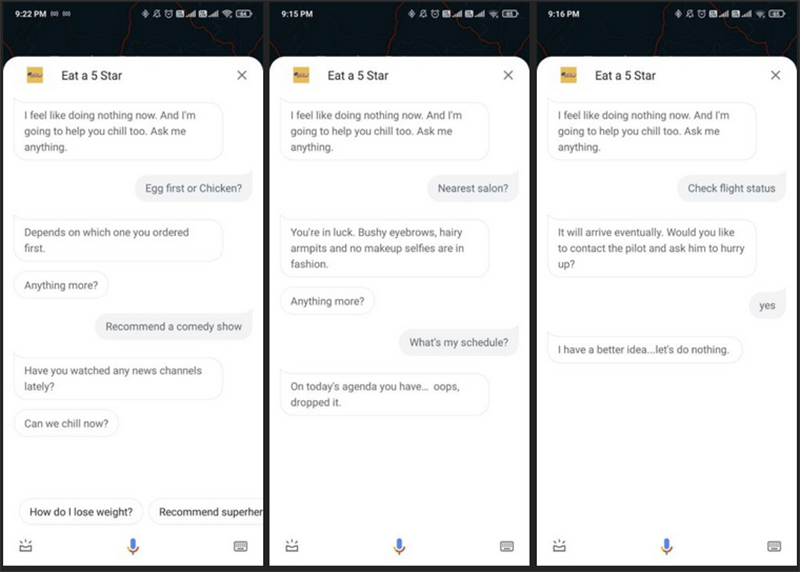 雖然你可能會因此想要噴髒話,不過畢竟是你自己啟動了吃零食的耍廢模式。Google 這波與 Cadbury 的品牌合作,就是希望給你一個最耍廢的點心品嚐時間。更多範例可以看看底下 Android Police 玩到的對話內容。