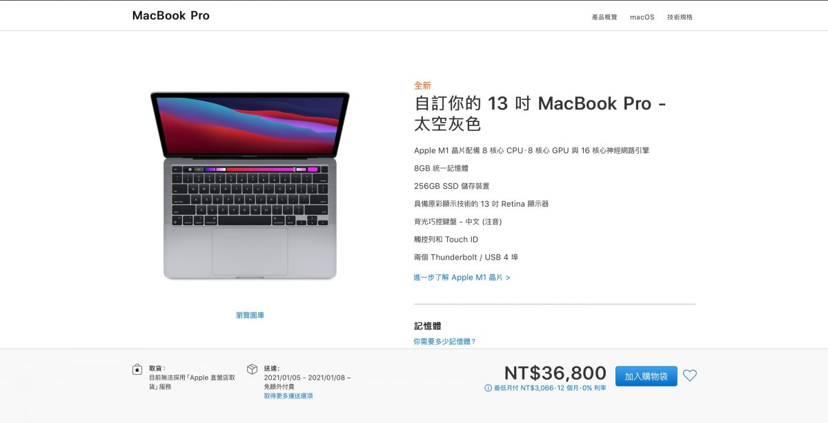12/29 在 PChome 上也可以購買到全新的M1版本 MacBook Pro,目前暫售的是 8+256、8+512 兩個版本,剩下的客製化升級容量還需要等待。另外在 Mac Mini 部分目前也可以預購了,到貨時間與官網差不多,但因為 PChome 在信用卡回饋上較多,因此若不急著使用的人可以選擇在 PChome 購買。
