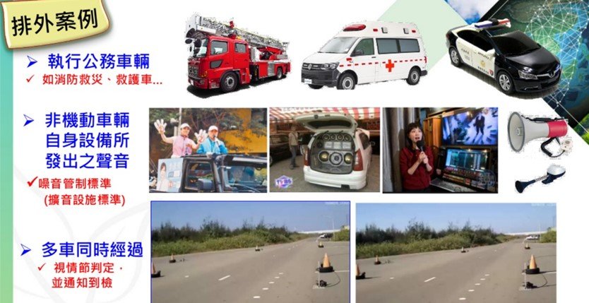 不過, 執行公務車輛、非機動車輛自身設備產生的聲音及多車同時經過會被排除。