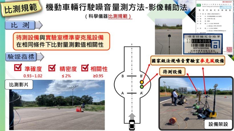 針對高噪音車輛擾寧問題,目前採搭配攔查檢測或通知車主到指定地點進行原地噪音量測,但偶有碰到在路上很吵但原地噪音卻合格的狀況加上攔查檢測非常耗人力物力,有鑑於此,環保署特參考超速照相執法模式,推動聲音照相直接開罰措施,並完成「機動車輛行駛噪音量測方法-影像輔助法」、「機動車輛噪音管制標準」及「使用中機動車輛噪音管制辦法」等三項法規修訂工作,在聲音照相都已符合目前檢測標準在精密度和準確度的相關規定下,「聲音照相」科技執法已經在2021年1月1日公告正式上路,違規可處新臺幣1800元至3600元。