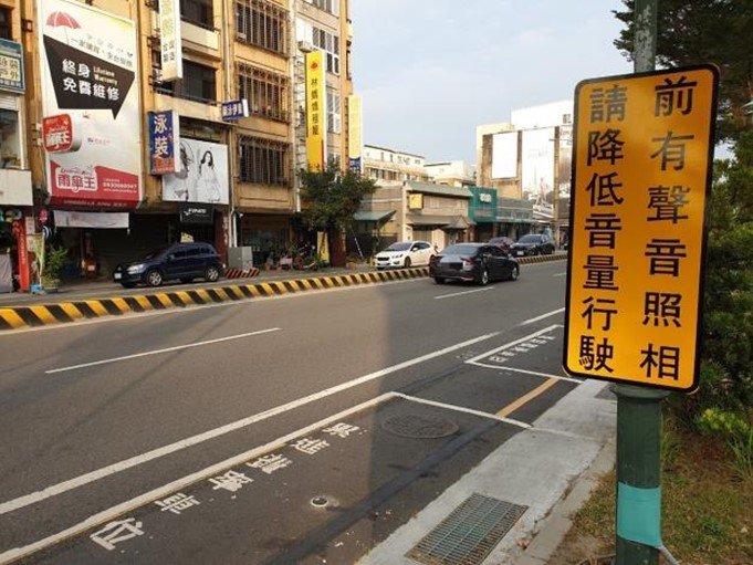 在「聲音照相」執法路段,在架設點前方100公尺至300公尺間,會設置「前有聲音照相 請降低音量行駛」的告示牌,提醒汽機車駕駛。