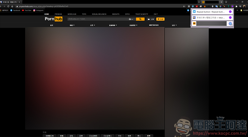 當然如果只是這樣那就太無趣了,許多老司機常逛的 P 站,也可以不斷的重複播放...,想看多久就看多久,當然這也要取決各位老司機的能耐啦XD