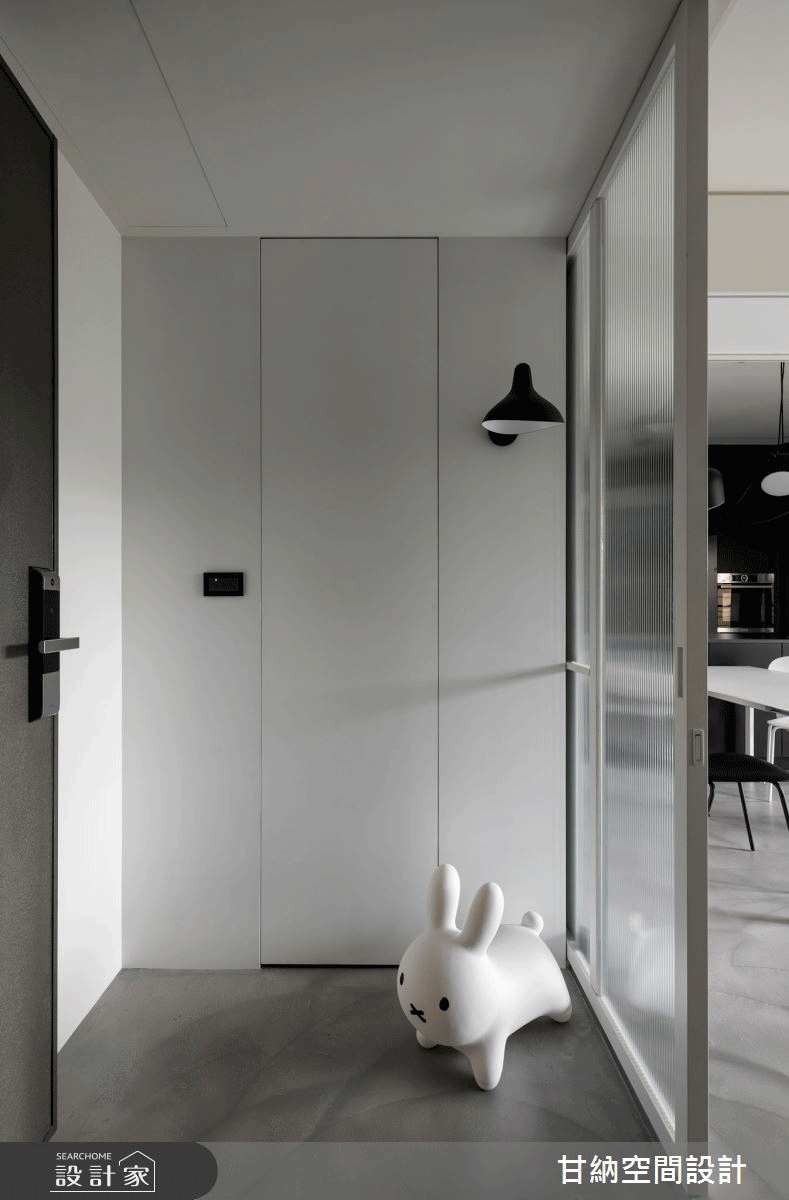 將玄關櫃和室內其他收納視為整體規劃,擴充收納強的面積,也可以安排格櫃、吊掛、或者是在門片上加裝洞洞板,增加收納機能。