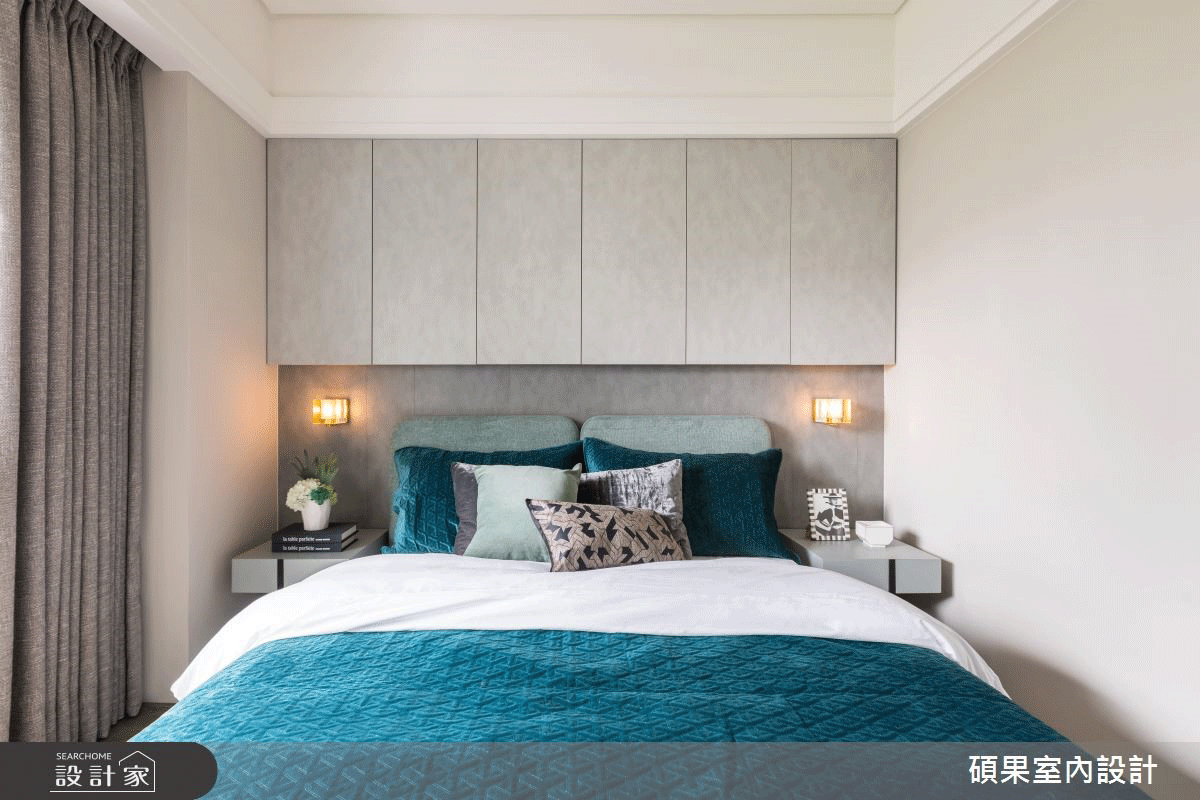 利用樑與柱形成的凹陷鑲嵌尺寸剛好的收納櫃,打造完全平整的牆面收納,同時也可以將空間修整得更方正,是補強收納機能又達到填補畸零空間的效果的雙贏設計,利用在臥室還可化解樑壓床的風水疑慮呢!