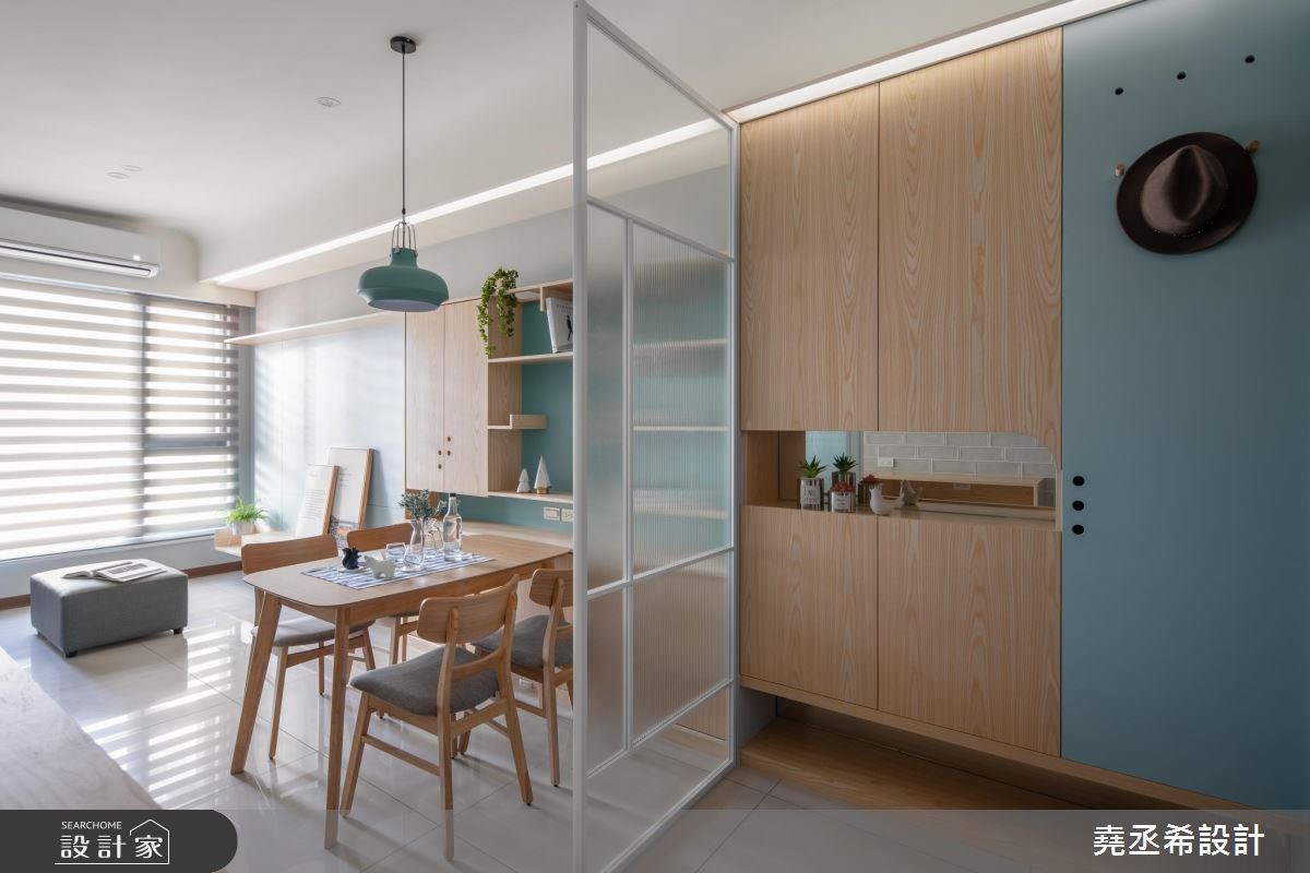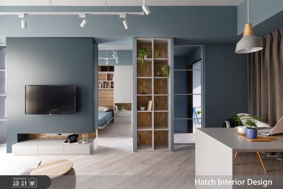 除了利用空間既有的牆面來規劃收納外,許多小坪數住宅也會打造像是半高電視牆等輕隔間來劃分場域,而輕隔間則可以雙面使用,一次滿足兩個場域的收納需求外,也能在坪數不足的狀況下創造更多的收納空間,也是另一種形式的收納整合設計。