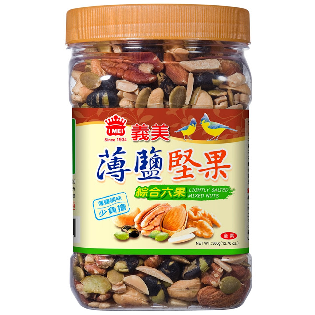 義美 薄鹽堅果-綜合六果使用低溫烘培,保留堅果最完整的風味。