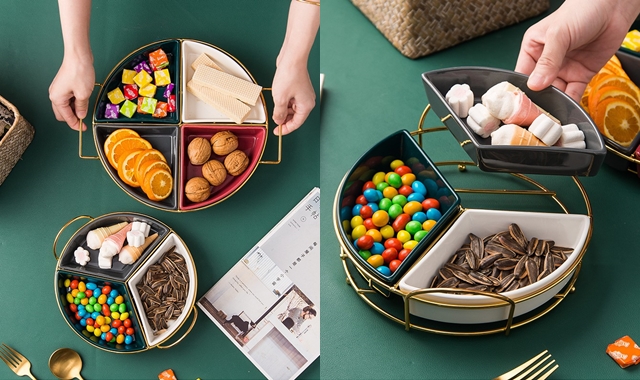 金屬托盤搭配上方灰色、墨綠色、紅色或白色的零食盤,這款北歐風分隔零食盤瞬間就讓居家多了一份質感,彷彿吃零食也是一種lifestyle!