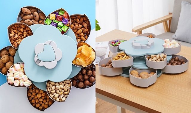這款零食盒能像花瓣一樣打開,造型有特色又充滿質感。分格收納防止串味,能180度旋轉,防灰塵和潮濕。上方還有手機支架,讓你能在吃零食的同時一邊追劇,太方便啦!