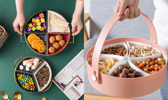 過年眾多親友來訪,零食常常一下就吃完,零食盒的容量就備受考驗。如果親友人數眾多,可以挑選內層分格數多的,比較方便招待親友。如果只是三五好友聚聚,則可以買容量比較精簡,造型比較精緻的品項,這樣也不容易造成食物殘留浪費的問題。