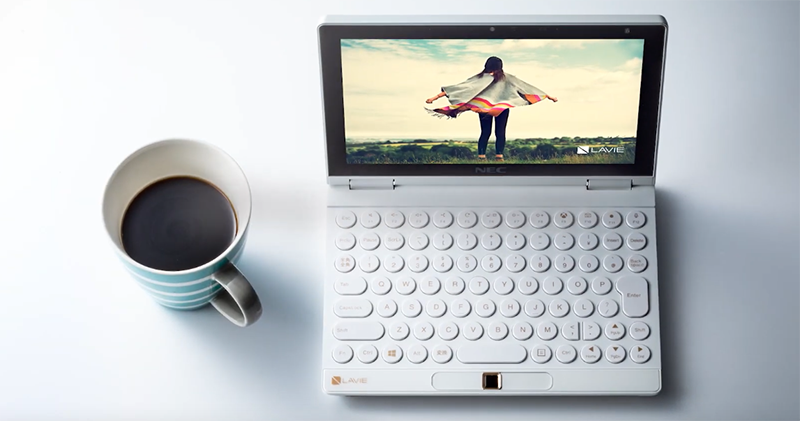 認真說,NEC Lavie Mini 整個感覺「又」是個衝著 Nintendo Switch 而來的產品。不過以其 8 吋平板筆電二合一的輕巧小筆電規格,然後搭配一組擁有指紋辨識器的超可愛圓形鍵盤設計(雖然是有點妙的7 排配置) -- 沒有觸控板,所以得要仰賴 1,900 x 1,200 解析度的觸控螢幕或外接滑鼠操作。