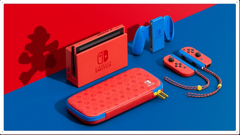 「Nintendo Switch 瑪利歐亮麗紅X亮麗藍 主機組合」是以瑪利歐為主題做設計,主機、底座、Joy-Con、Joy-Con腕帶和Joy-Con握把,分別採用了象徵瑪利歐的紅色和藍色進行設計。(官方表示這是首次更改主機顏色的主機組合。)
