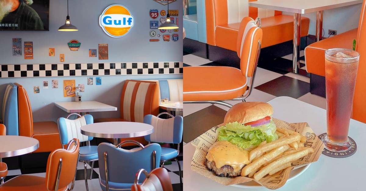 位在捷運亞東醫院站的「卡森復古美式餐廳」近期可是IG網紅們的打卡新地標,以1950年代美式風格為主題設計,從店門口到餐廳內彷彿走進了電影場景一般。牆上漆上五零年代最夯配上搶眼的橘色Mix天藍色,地板也有小巧思黑白棋盤格磁磚超復古!就連美劇學生餐廳裡最常出現的沙發椅也一併搬進來,濃濃美式氛圍連陳芳語也在此搶拍MV〈4AM CALLS〉。