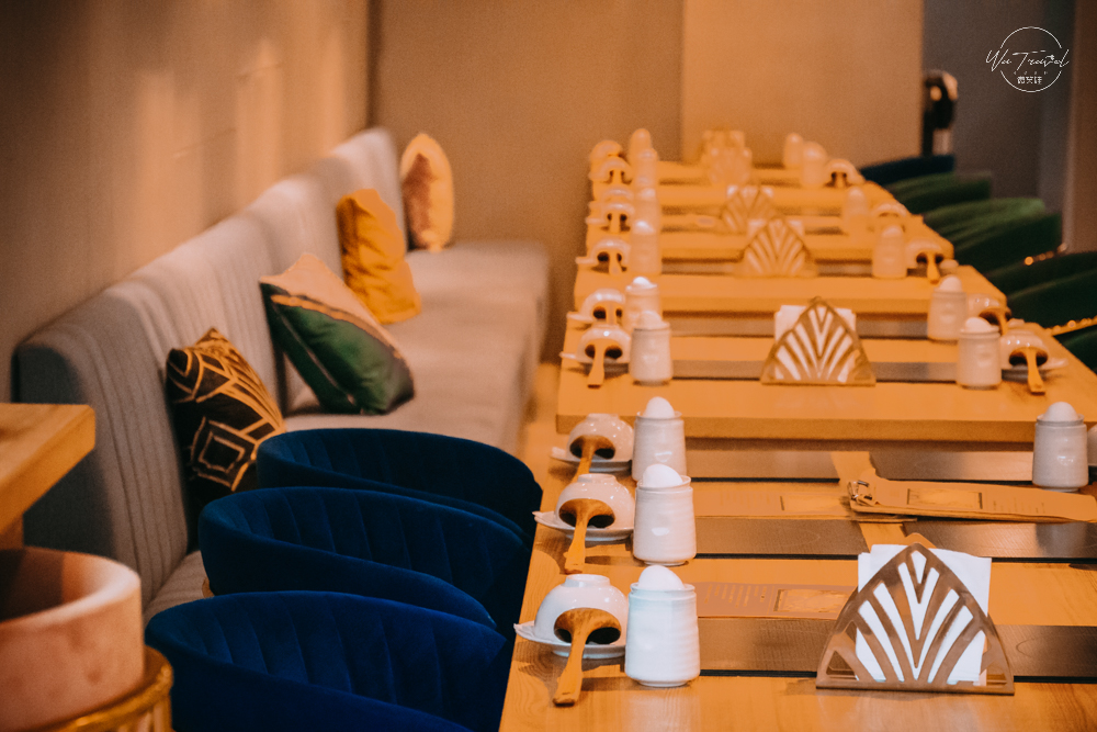 一眨眼沒多久都滿桌了!御鼎湯除了椅子超美又很好坐之外綠色的牆面跟燈飾也都別出心裁。