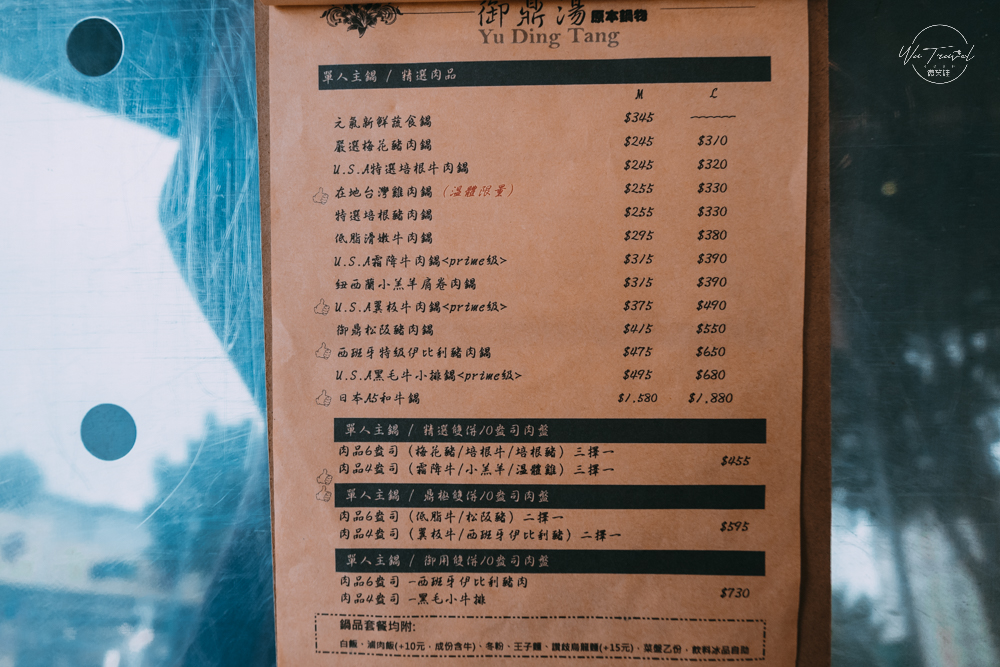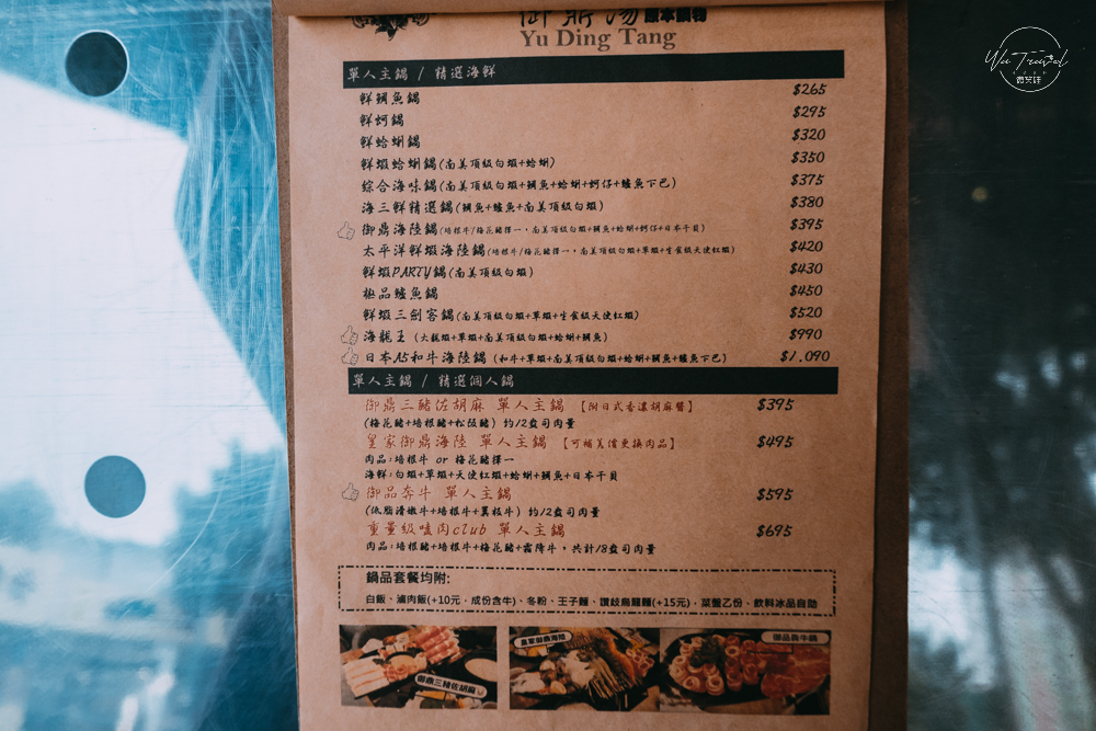 御鼎湯鍋物實在太好拍,介紹完整個室內裝潢當然不能錯過的是他們的鍋物了!從湯底的選擇到主餐肉品到附餐跟吃到飽的冰品、飲品都讓超吸引人。